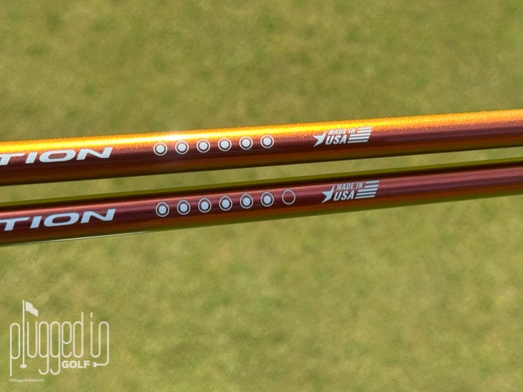 Newton knows that a shaft doesn’t have to look good to be successful, but it doesn’t hurt. The color shifting blue/purple/green of the Motion and Motion FW [review HERE] remains one of my favorite looks, but the orange/red/yellow of the Newton Fast Motion isn’t far behind. Take a look at the picture above to see just how much a small change in the light can shift the Fast Motion from light orange to nearly maroon.