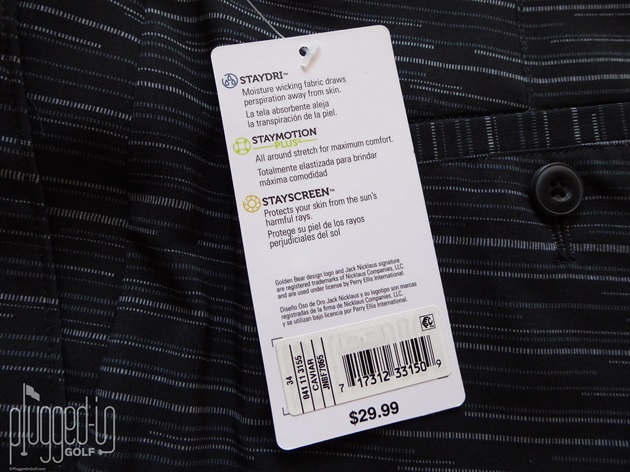 Although marketed as fashion clothing for everyday use, the Nicklaus Collection screams golf in my opinion.  But that’s not a bad thing when the label and buttons have 18 time major winner Jack Nicklaus’s name on them.  The shorts have some versatility, but the shiny, printed polos are very golf-centric.