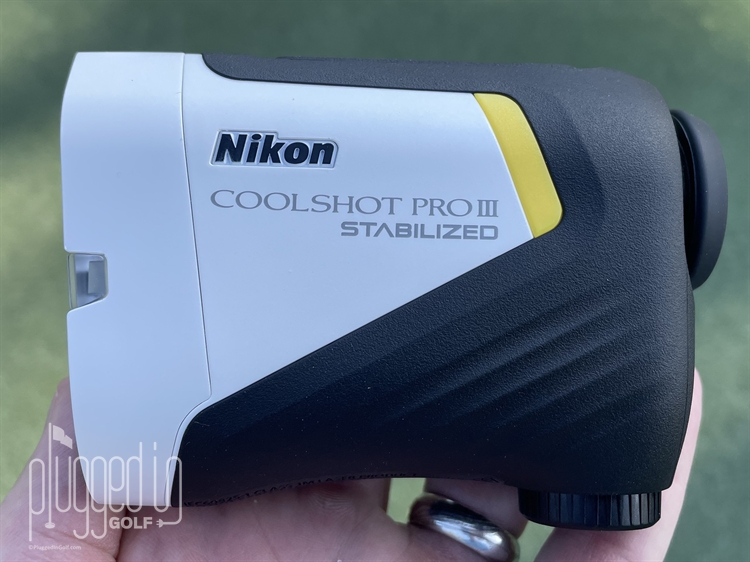 I was impressed with the changes Nikon made to their flagship COOLSHOT PRO STABILIZED. The PROIII felt a bit different in my hand at first, but I came to like the new contours of the black rubberized grip. Size wise, the PROIII fit my medium sized hands nicely. Relatively lightweight, the Nikon COOLSHOT PROIII STABILIZED rangefinder is a nice size for walkers or for slipping in your pocket on those cart path only days. The one feature the PROIII lacks is a magnet, but that’s by design – it would interfere with the stabilization mechanism. For me, the lack of a magnet isn’t a deal breaker. Without hesitation, I’m putting the Nikon COOLSHOT PROIII STABILIZED rangefinder straight into my bag.