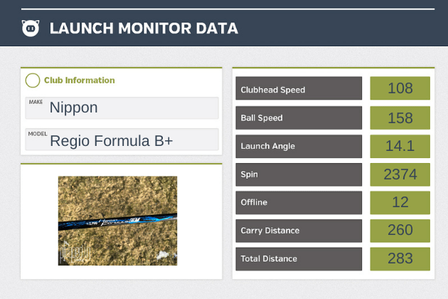 When I tested the Regio Formula B+, what stood out to me was the consistency of the shaft’s performance. Just as the feel was the same swing after swing, anytime I made a good pass at the ball, the result was nearly identical. I saw mid launch, mid spin, with a tight draw.