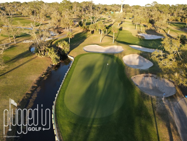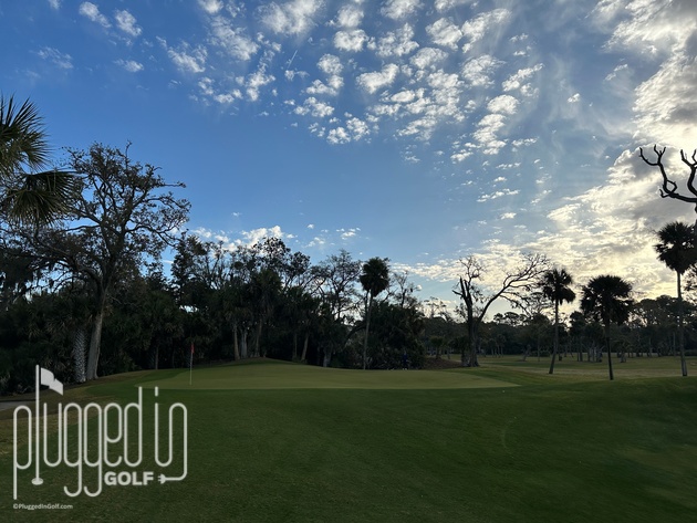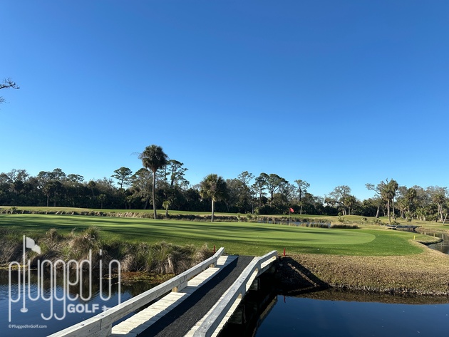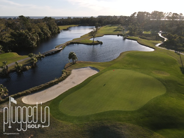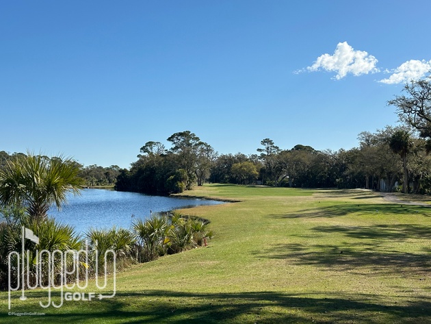 The main challenge on the approach shots is that they must be played through the air. Water runs in front of the green on numerous holes, taking the ground game out of the equation. The hazards are generally not tight to the green, but coming up a club short will often result in a lost ball.
