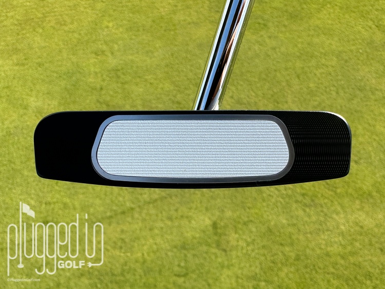 Those notes are all fairly common among zero torque putters. What Odyssey adds that’s unique is their Ai-ONE face insert. The aluminum backer has contours designed to promote consistent ball speed across the face. In my testing last fall, I found that the Ai-ONE insert was substantially more consistent than a standard milled face [full details HERE].