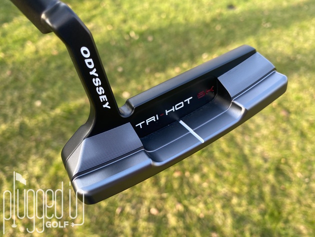 With so much going on, it would be easy for this putter to look overly busy. Odyssey did a good job balancing all these technical elements with moderate branding. The face has a silver Odyssey swirl logo on the heel. In the cavity, “Tri-Hot 5K” is written in a thin, futuristic font. On the sole, the focus stays on the Odyssey branding in white against the dark back metal.