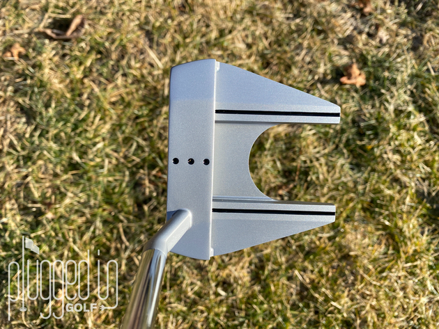 For this review, I tested the White Hot OG #7S.  The #7 has been my favorite Odyssey head shape since it was introduced, and this version only cemented that opinion.  The short slant neck creates enough toe hang to match my natural stroke, and the #7 design provides all the stability and forgiveness I could ask for.  Another thing that I’ve always liked about the #7 is how the “prongs” act as natural sight lines.