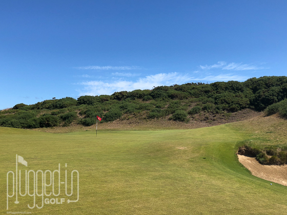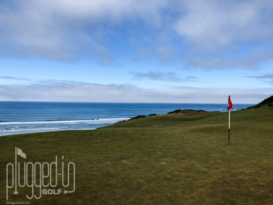 Old MacDonald has a fraction of the coastline that Bandon Dunes and Pacific Dunes do, but Doak and Urbina use it to great effect. The approach on #7 is played straight out to the ocean, and you climb a dune to get to the view you see above. #8 plays downhill and inland, leaving the ocean until you return again on #15.