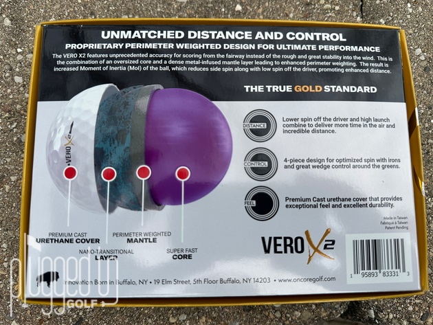 The OnCore Vero X2 separates itself from the rest of the OnCore lineup with its focus on the high speed player. This is the highest compression ball that they make; a full 10 points higher than the next closest (95 to 85 in the Vero X1). OnCore states that it’s built for the “Advanced to Tour Level Player” with swing speed either “100+” or 110+” depending on where you look on their site.