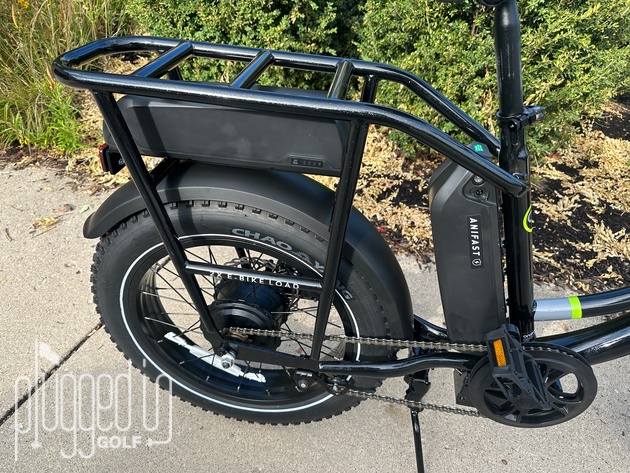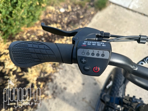 Finally, just as with the Ranger S, I used the DivnickGolf E-Bike Golf Bag Carrier [review HERE] to turn this e-bike into a golf bike. The carrier connected to the rear rack with no trouble, and the fat tires handled all types of terrain easily. I had no problem getting up and down hills, and the Trcker 100 was very easy on the turf. The E-Bike Golf Bag Carrier also made the frequent on-and-off quicker because it acts as a kickstand.