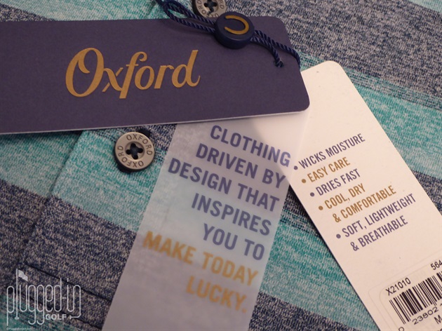 Founded in 1942, Oxford Industries reached the 75 year milestone this year. In keeping with a rich heritage of crafting quality clothing, Oxford Golf has been reimagined as simply Oxford. I realize that I live in Orlando and that sounds like a Disney term, but rebranding doesn’t fully encompass what I saw at the PGA Show earlier this year. Beyond the new horseshoe logo and “Make Today Lucky” catch phrase, the new collection goes far beyond the performance golf apparel covered in this review. With fresh new fabrics, styles and offerings to satisfy a complete wardrobe, I’m really looking forward to reuniting with some of the pieces I previewed. But for now, let’s take a closer look at some summer golf shirts and shorts.