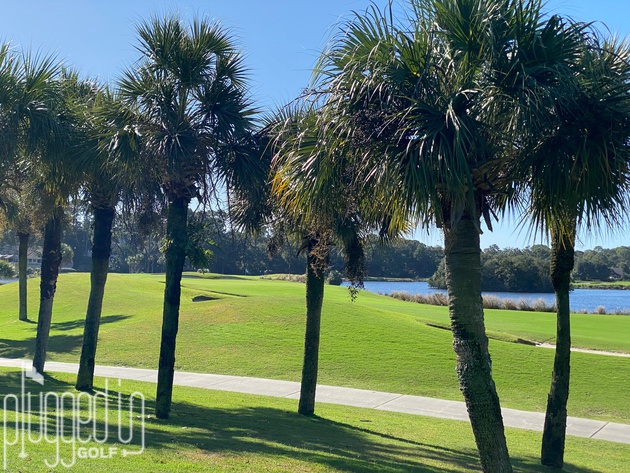 Accurate drives at the Robert Trent Jones Course will set up favorable approach shots. The fairways here have more movement than any of the other Hilton Head courses we played, but the undulations are still quite modest. You’re very likely to draw a flat, even lie.
