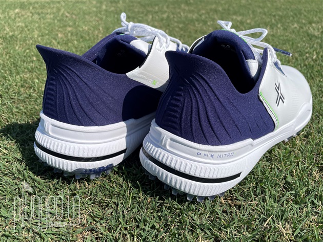 The comfort assessment of the PAYNTR X 005 F golf shoes actually started with my hands and eyes. Taking the shoes out of the box, I couldn’t believe how soft and supple the uppers felt. And my eyes were drawn to the ridges on the inside of the heel. Those ridges, what PAYNTR calls “counters,” form the key feature of the PMX Fit Heel, which secures the back of the foot in a blister free way. PAYNTR is so certain of this method that they offer a 90 day blister free warranty.