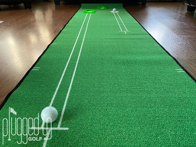 All together, these markings allow golfers to work on a nice range of skills.  I found the Ts to be excellent for promoting good aim.  They’re also very useful if you train with a putting sensor like BioMech Putt [review HERE].  Finally, the dashed line is a good reminder not to blast your short putts into the hole.