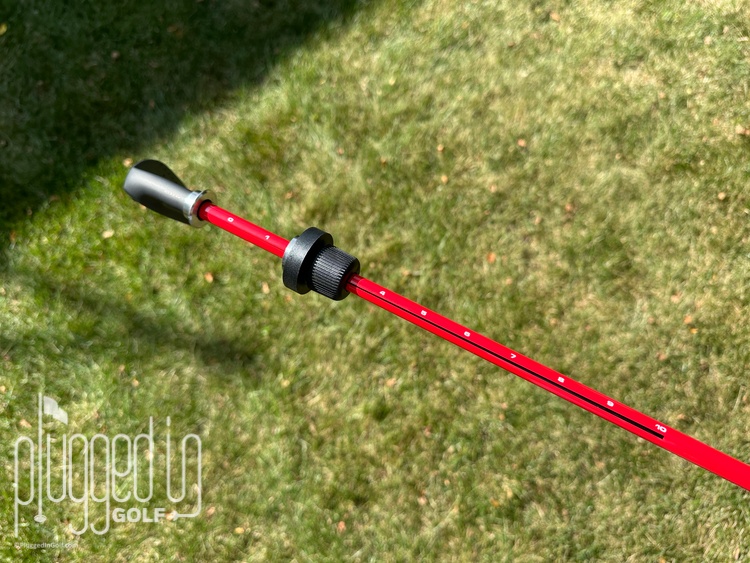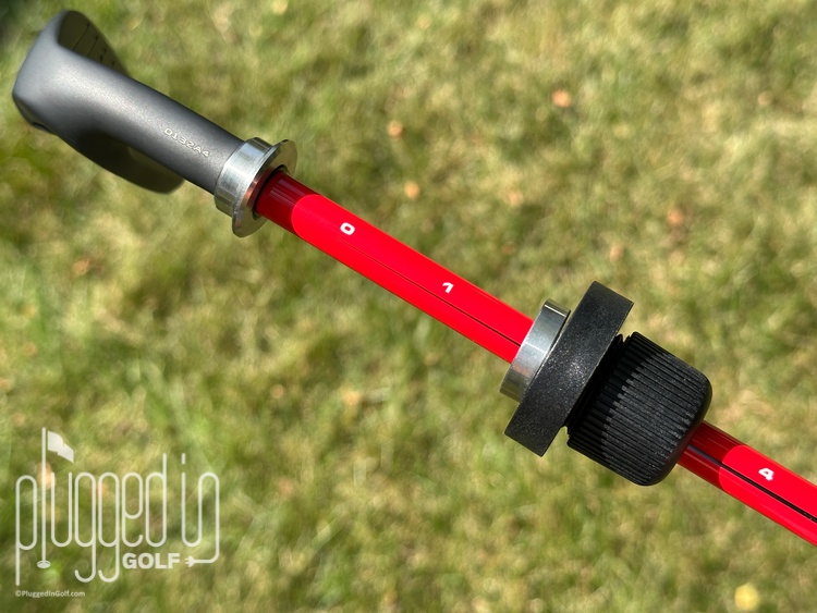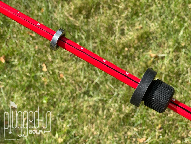 There is no assembly required for the Performance Golf Click Stick – it comes out of the box ready to swing.  The only adjustment is the Compression Clicker which can be set anywhere from 0 to 10.  Making this adjustment requires loosening the nut, sliding it to your preferred level, and tightening the nut again.