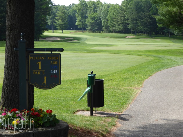 Teeing areas, like most of the course at Pilgrim’s Run, are framed with majestic trees. Fairways are generous and hazards readily apparent. 150 yardage stakes served as great visual references for those who haven’t played the course before.