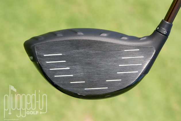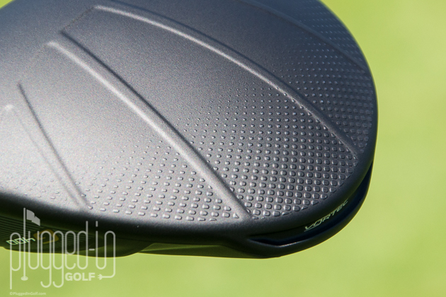 The G400 driver’s crown has a lot going on. Nearest the ball, you’ll notice the biggest Turbulators yet. From there, you see the Dragonfly technology which makes the crown ultra-thin (.43mm!) to save weight. While this seems busy, the matte black finish makes it all secondary to your focus on the ball.