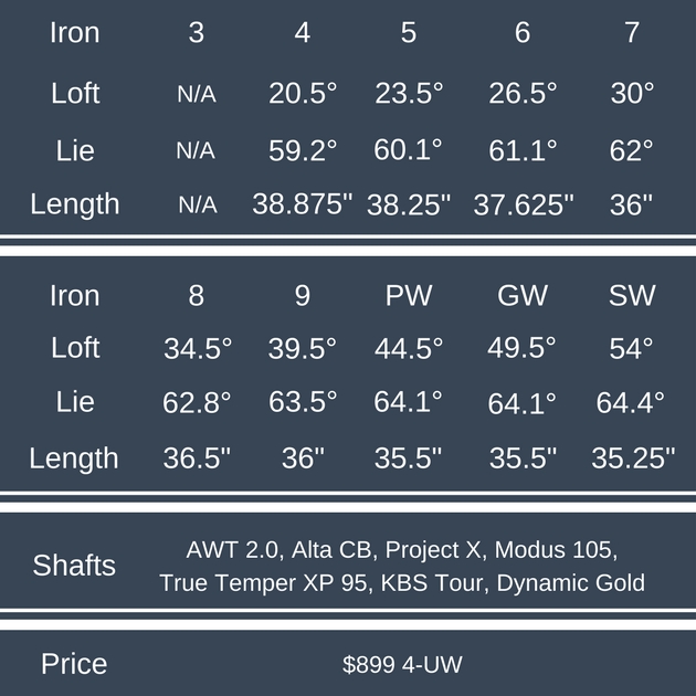 If you’re a high ball hitter, or you just want to have the longest 7I under the sun, PING offers Power Spec. These lofts are 1.5 to 2 degrees stronger throughout the set to produce stronger trajectories and more distance.