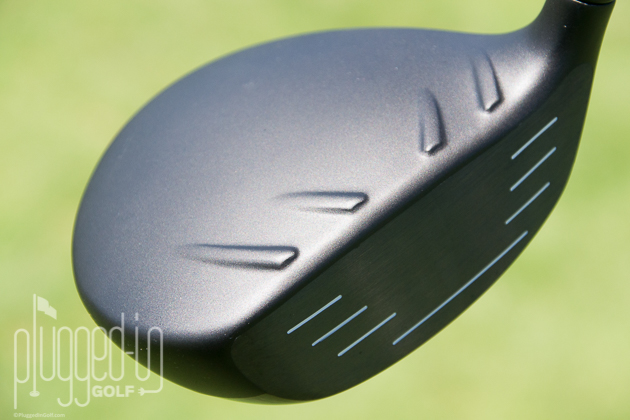 At address, the G400 Stretch fairway wood looks very similar to the standard G400 fairway wood, just larger. It’s still slightly pear shaped and not too long from front to back to hit off the turf. Of course the crown is matte black, and the leading edge features PING’s Turbulators.