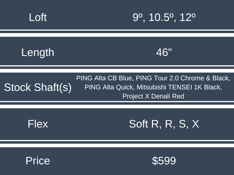 Finally, PING is among the industry leaders in shaft options. There are four excellent PING-specific options plus the Denali Red and Mitsubishi TENSEI 1K Black [review HERE]. The stock length will vary depending on the shaft that you choose – 46″ with the PING Alta CB Blue, 45.5″ with the PING Tour, Denali, or TENSEI. PING also details the changes that the different shafts will make on swing weight on their website, but the G440 MAX comes stock at D3.