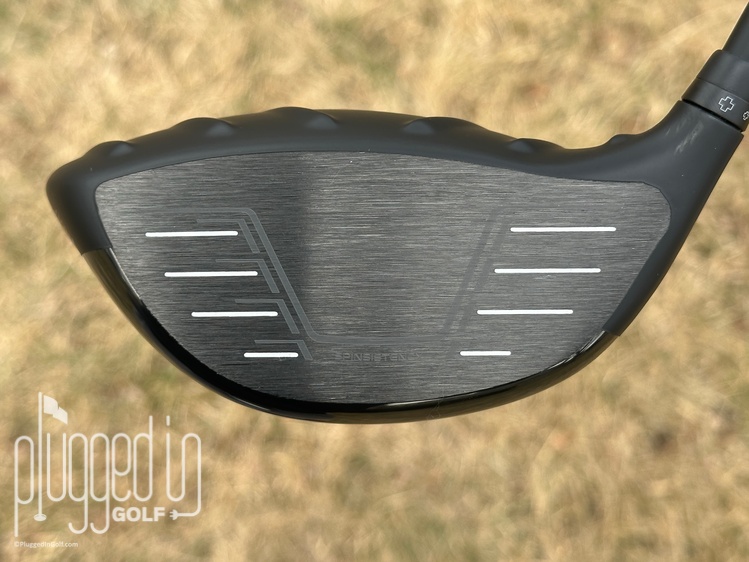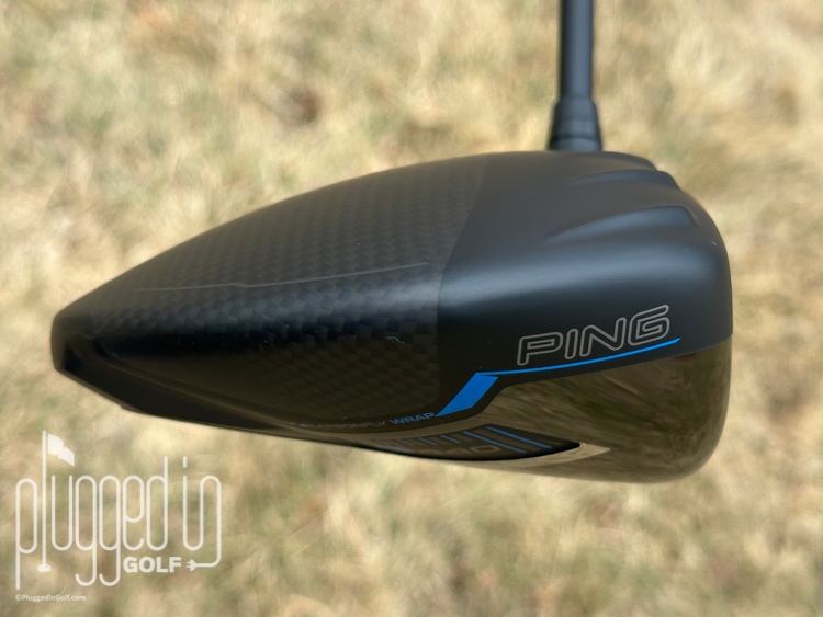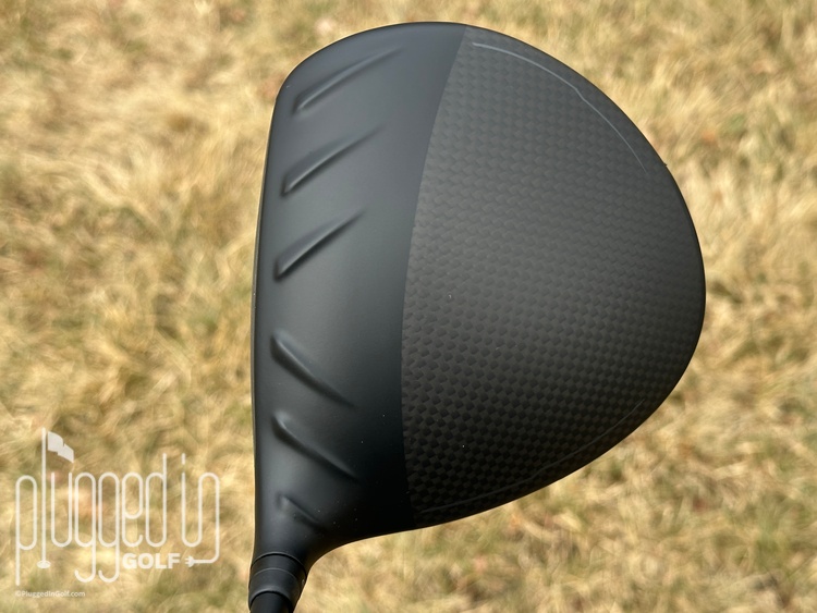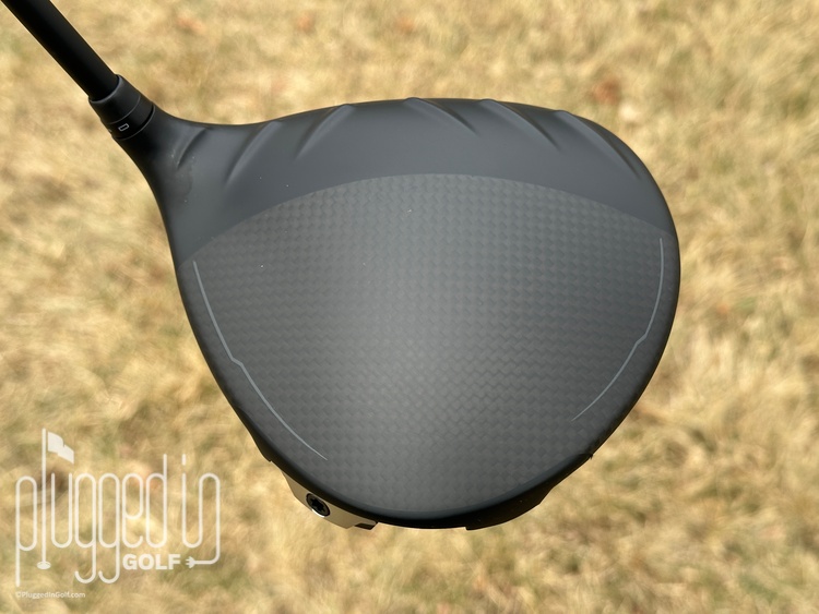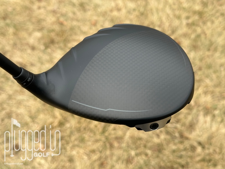 Comparing the PING G440 SFT driver to the G430 SFT driver [review HERE], the address look has changed substantially. Two things that have been removed are the angular indentations and the texture on the edges of the crown. What’s new is the Carbonfly Wrap crown, which was previously seen only on the LST models [G440 LST driver review HERE]. I think that overall, the G440 SFT has a better, cleaner look at address.