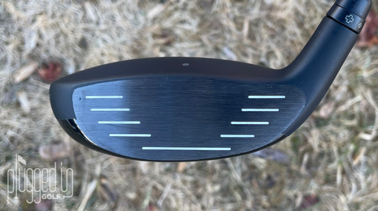 One of the biggest changes aestheticly in the PING G440 SFT fairway wood is the more reserved blue color scheme. The neon yellow in last generation’s G430 line [review HERE] had much more contrast against the black club versus the 2025 blue that seamlessly blends into parts of the club. The other major change is the thinned out rear sole. This is a significant change since this rear sole protrusion dates back to the original G400 line. However, it makes sense given the deeper face and the added need to keep the club flush with the ground.