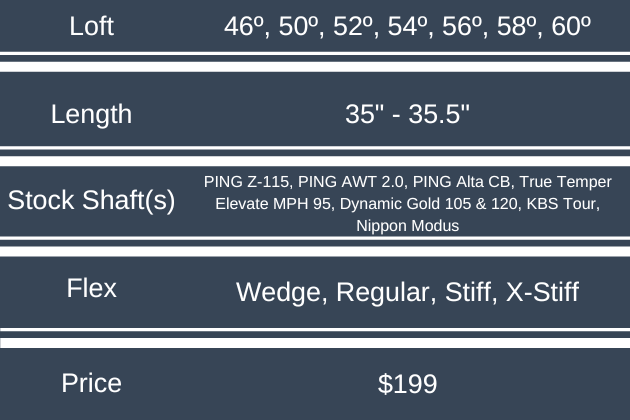 The PING Glide 4.0 wedges continue to be extremely hard to beat. They provide high level performance in all areas of the short game from full swing forgiveness to spin on touch shots. You get a variety of soles that are meaningfully different without being overwhelming or complicated. Finally, the selection of stock shafts and fitting options is second to none.