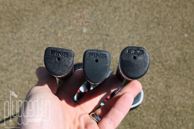 Last but not least, PING is offering three different stock grips: the PP60, PP61, and PP62 (shown above from left to right). The PP60 is lightweight and midsized with a pentagonal shape and a broad, flat “front.” The PP61 is an “exaggerated pistol” shape with a rubber under-listing for softer feel. The largest grip is the PP62, which is very round and has a foam under-listing to cut down its weight.