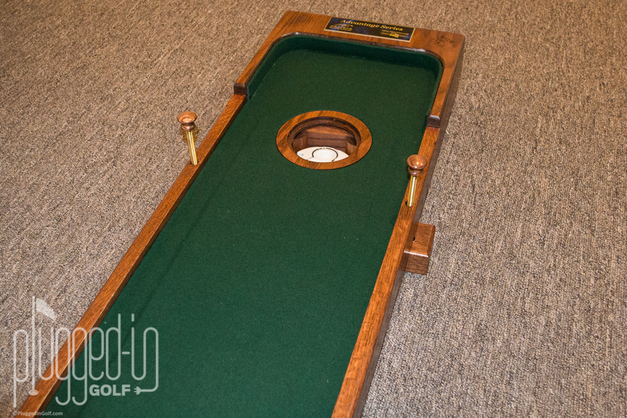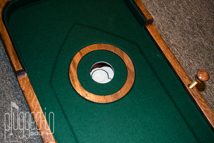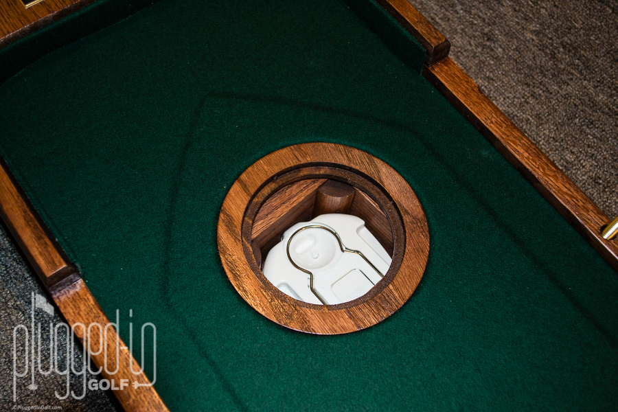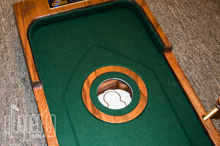 Provoto’s systems are a nice platform option without the negative baggage. First, and maybe most importantly, the Provoto systems have adjustability to make sure you can level the platform on any surface. You can also adjust the platform to create breaks in the putt. Provoto also uses furniture-quality hardwood that not only makes for a higher quality product, it makes for a better looking piece of equipment that is not an eyesore in the room. Should you decide you don’t want to leave the Provoto system up permanently, there’s a hinge in the middle to fold it up to move or store. The Provoto platforms not only provide enough depth for the ball to fall all the way in the hole, but they also have a Robo Cup auto-return mechanism to pop the ball back to you, and if you miss the hole, there are channels that run down the sides to return the ball back to you as well.