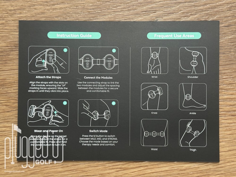 Using the FluxGo is very easy. First, decide what body part you want to treat and build the appropriate configuration. The chart above is a great starting point, but you may need to use different straps depending on your size. Once you’ve got the modules attached, power them on, select your mode (Mild, Mid, or Strong), and push the power button again. The modes last between eight and twenty minutes.
