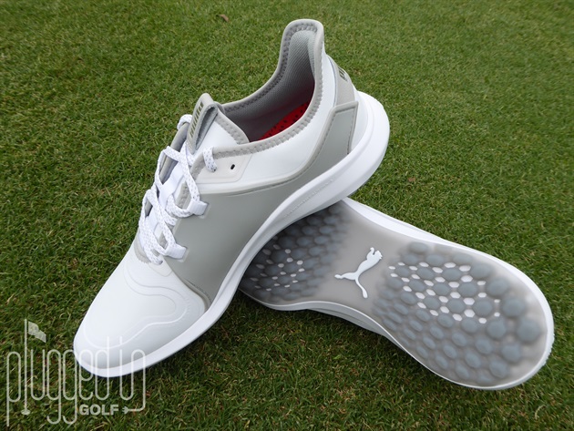 The IGNITE foam of the midsole provides that wonderful balance between firm and cushy that makes you feel like you could walk all day in comfort. The FASTEN8 had the flexibility I favor for responsive footwork during my swing. Although the PUMA website states “Fits slightly long, consider going down ½ size,” I ended up sticking with my normal 9.5 and was happy with the fit – despite them being slightly on the large side. For me, going down in size tilted the scale to a bit small.