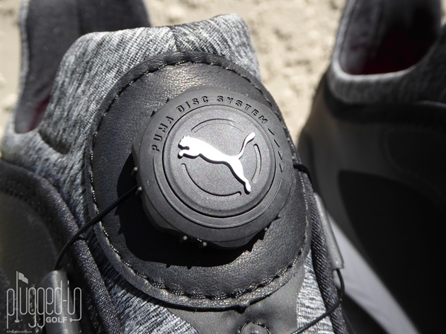 First off, the DISC System makes slipping into the IGNITE PWRADAPT DISC golf shoe a breeze. With the DISC disengaged, the wires are fully released making the top of the shoe open up all the way down the lace area. To help even more when pulling on the shoes, Puma provided a tall and wide tab at the back of the ankle. To tighten the shoe you merely turn the DISC clockwise and the ratcheting mechanism locks in the desired tightness. Unlocking the DISK System is nothing more than a quarter turn counterclockwise. Simple to use and oh so comfortable across the top of my foot.