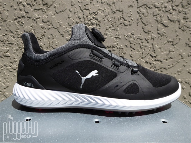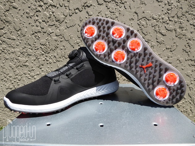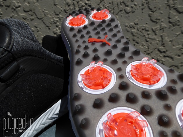 I was very pleased with my first venture into Puma golf shoes. The IGNITE PWRADAPT DISC golf shoe was very comfortable to wear straight out of the box and all day at the golf course. Being able to dial in the fit with the DISC System is stupendous. 3-D traction is for real, be it the innovative cleat pods or the other grip nubs on the flexible sole. It’s been record dry during my testing period so I can’t speak about the 2 year water proof warranty, but I’ll steal this passage from the non-DISC review: “after 18 holes of trudging through the mud and water, my feet were bone dry”.