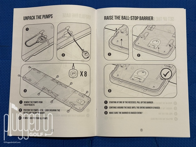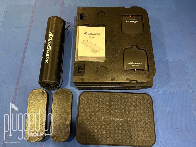 The phrase “adjustable putting green” could conjure up thoughts of a long, complicated set up process, but that’s not the PuttOUT way. After I unboxed the AirBreak, I had all the pieces seen above. The instruction manual is excellent, but it’s more of a confidence booster than a necessity – the PuttOUT AirBreak sets up intuitively.