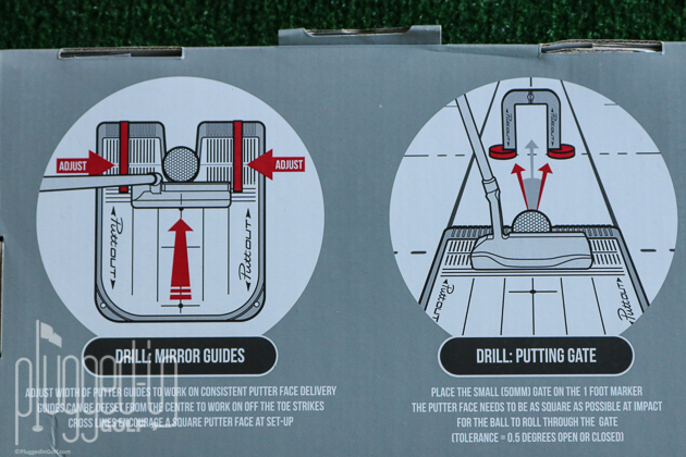 Should you want to take advantage of the additional features of the PuttOut Putting Mirror, they only take a few seconds to set up. The gate simply plugs into the red discs and the putter guides attach to the mirror magnetically. In under a minute, you can arrange to get feedback on almost every important element of putting: set up, club path, and club face at impact.