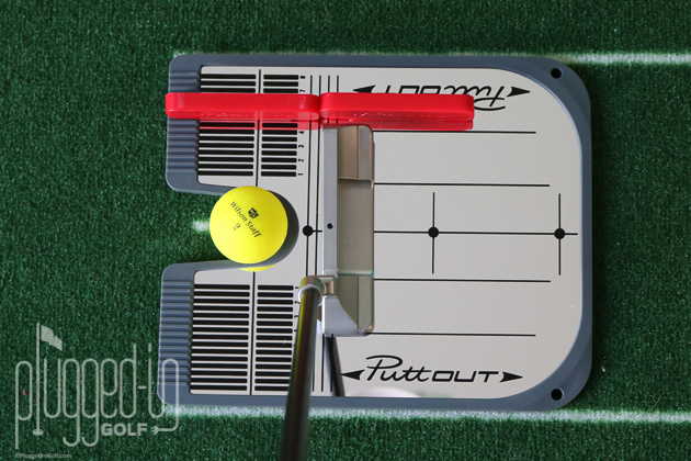 The final piece of the kit is the ball gate. If you’re working indoors with the PuttOut trainer, the gate is superfluous, but it’s a great piece to have when you’re outdoors. Placed one foot from the ball, it allows only 0.5 degrees of error, which is a stringent test.