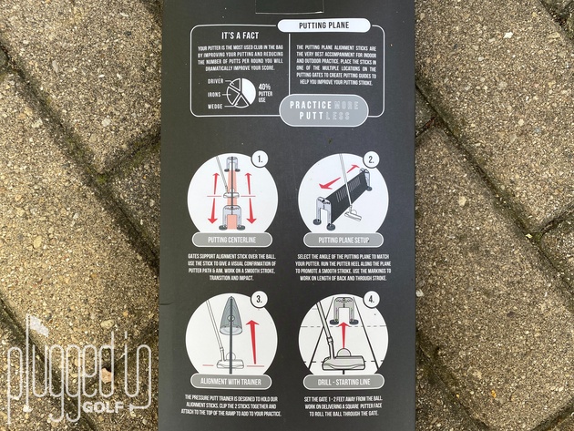 Assembling the putting gates takes seconds – just plug the bases into the upright. Setting up any of the four drills shown on the package takes no more than a minute. Some of these drills may not be obvious to all golfers, but it’s hard to make it any clearer than putting a picture right on the product itself.
