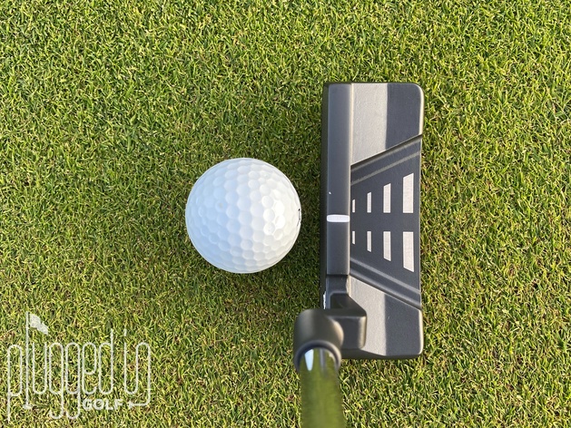 At address, PXG’s Runway Reticle alignment aid stands out. It’s an aptly named feature that makes it easy to line up putts. I also like how the shoulders are shaped to enhance the “runway”.