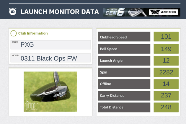 My first experience with the PXG 0311 Black Ops fairway wood gave me a perfect chance to focus on the sound and feel.  I was hitting balls directly into the sun, so I had no other feedback outside of waiting for my fitter’s response to the Trackman data.
