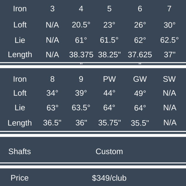 I use hybrids that are 20* and 23* in loft, so I’d be starting this set with the six iron.