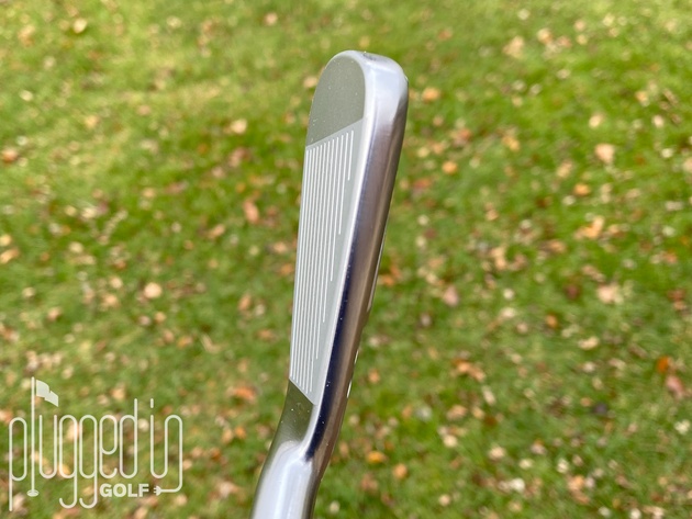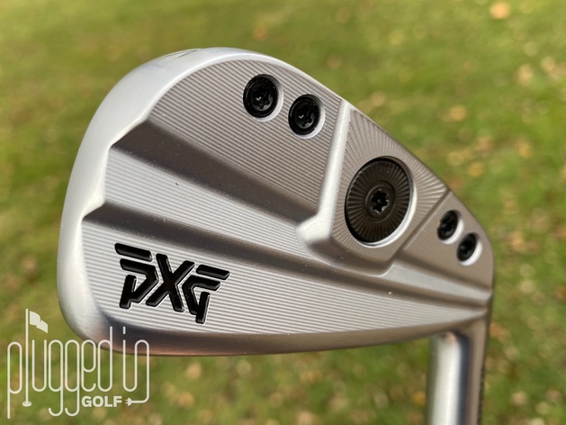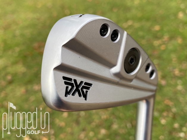 In the bag, the PXG 0311 X GEN4 driving iron looks nearly identical to the other PXG GEN4 irons. Mill marks cover the stair-stepped back, and the PXG logo is tucked into the toe. Four small weights surround the large Precision Weighting Technology port. The distinguishing mark is the mysterious “X” where the iron’s number would normally be.
