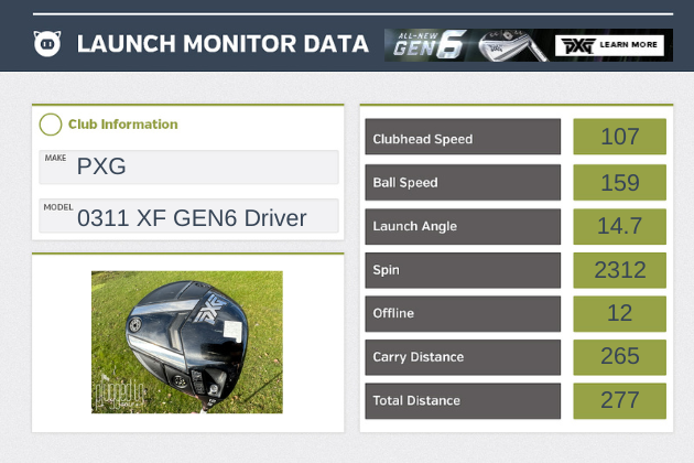 The similarities between the PXG 0311 XF GEN6 driver and the standard 0311 continue to the sound and feel. Both drivers have a satisfying staccato impact sound that’s mid-pitch and robust. Perfect strikes add a slight metallic overtone. The impact sound is below average in volume, which is unusual for a more forgiving driver.