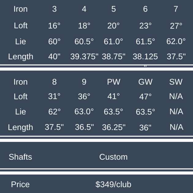 Are those loft right!? I thought my Forged Tecs were strong, these are almost a full club stronger. Actually, the 5 iron listed at 20* is the same as my TSi3 3-Hybrid… Just crazy.