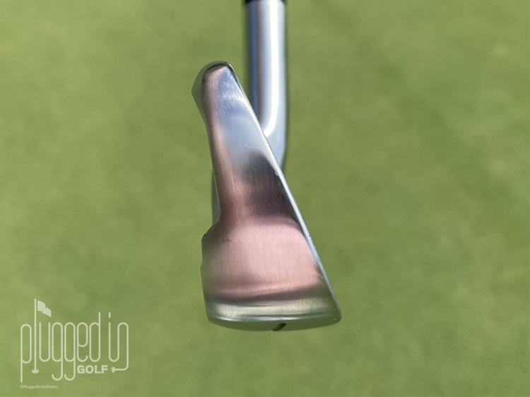 In the bag, I noted how the trailing edge of the sole is softly tapered which not only looks nice but suggests the irons will flow through turf effortlessly. The backsides of the 0311 P GEN7 irons display a refined elegance with harmonious angles and fine milled lines. The PXG badge is still large, but that titanium weight screw looks poised for a space mission.