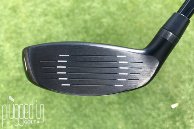 Aside from the crown, the rest of the club appears fairly traditional. The shape finds the sweet spot between a slimmer iron-like profile and a stretched, wood-like profile. The head shape is slightly different from previous generations with the face becoming a bit taller and the head longer. Looking at the sole of the club, you’ll also notice moveable weights near the face and the heel.