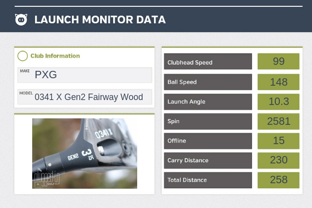 The PXG 0341 X Gen2 fairway wood produces good ball speed but doesn’t launch the ball easily.