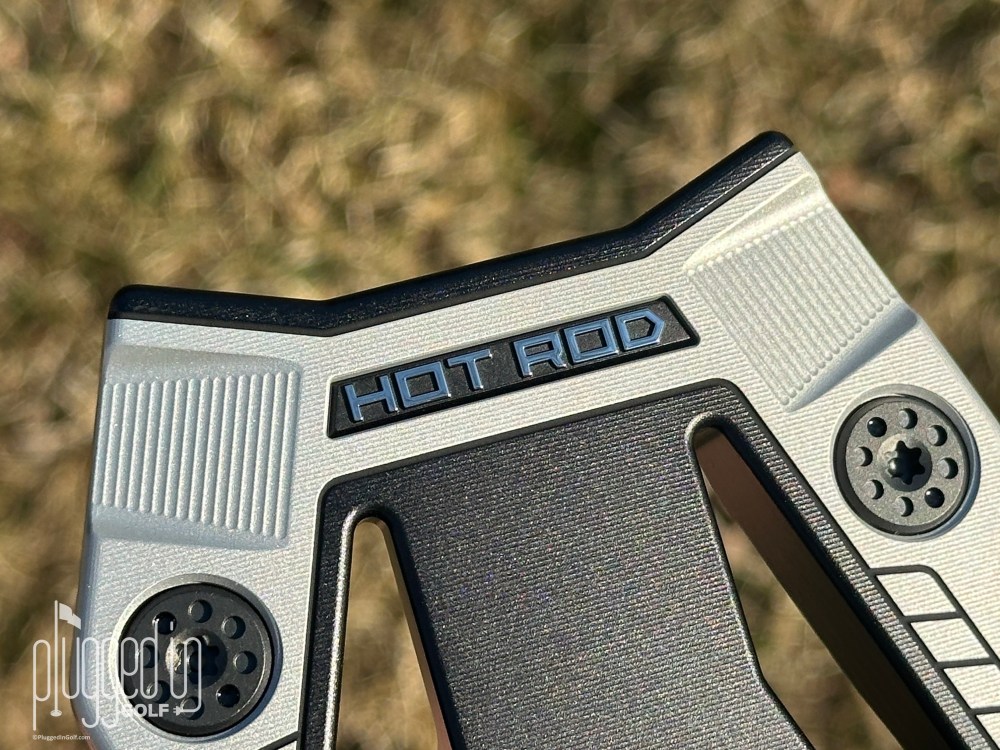 Turning the putter over, you’ll find a balance of silver and black.  Large PXG branding highlights the leading edge of the face with “Hot Rod” emblazoned along the trailing edge.  A second look finds four removable weights – a feature I’ll discuss in detail later.