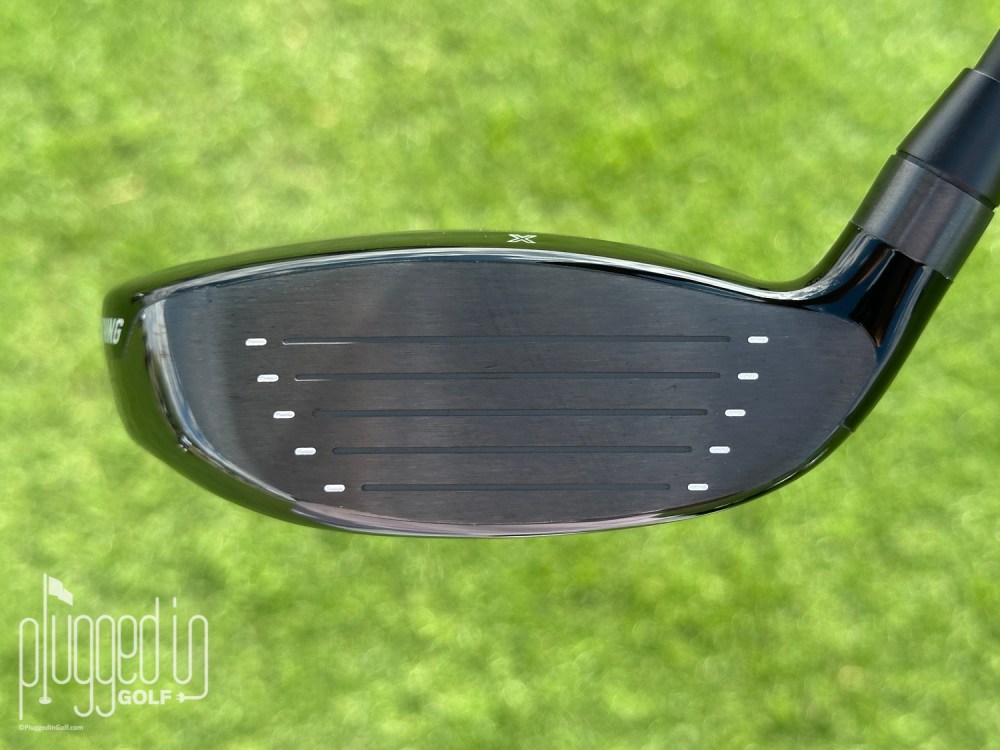 In the bag, the Lightning fairway wood has a very clean look. The gloss black sole’s only ornamentation are the three weight ports. Moderately sized “PXG” branding is tucked along the leading edge near the toe.