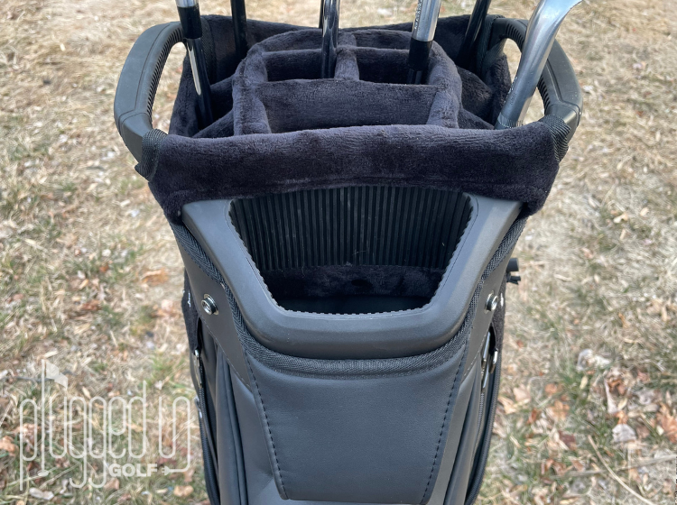 The top of the bag features two ergonomic handles in addition to a handle on the rear part of the bag. This makes it convenient to transfer clubs from the car to the cart. A well-padded single carry strap is also available should you need it.