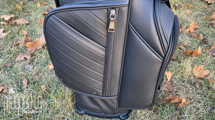 Lastly, the RevCore Lux Hybrid Stand Bag features a removable embroidery panel for easy customization and a well-padded rain cover, which feels appropriate for a luxury golf bag.