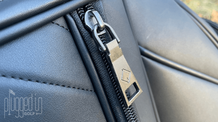 If you are reading this review, you obviously care about the look of your golf bag. Lucky for you, the RevCore Lux Hybrid Stand Bag is built with the aesthetic as the main attraction. The all-black outer shell is made with premium foam-backed synthetic leather and black nickel alloy hardware and zippers that immediately draw your eyes. In addition, the six way dividers and heavily padded shoulder straps are both lined with velvet to match the high end look. Before I even opened a pocket or put in a club, I was impressed.