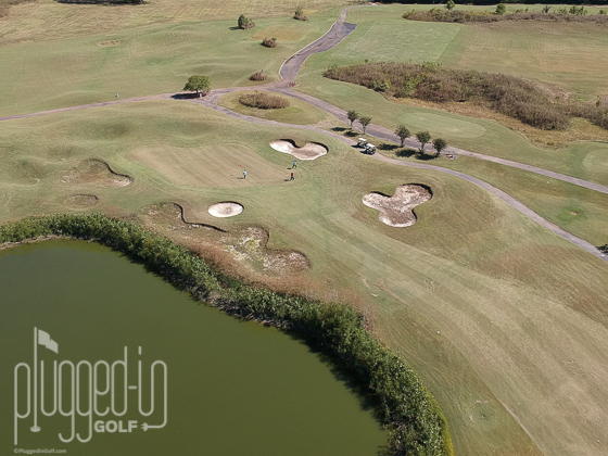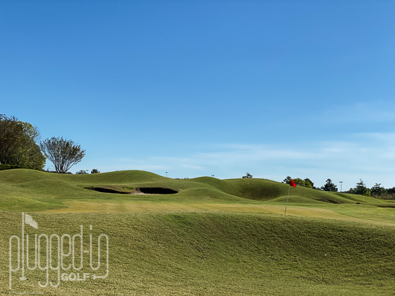 The surrounds have a mixture of grass bunkers, mounds, and sand bunkers. There’s only a thin strip of fringe around the green, so your short game needs to favor high pitches over bump and runs. Many of the contours around the greens are player-friendly, but the bunkers are deep and the mounds can create very tricky stances.