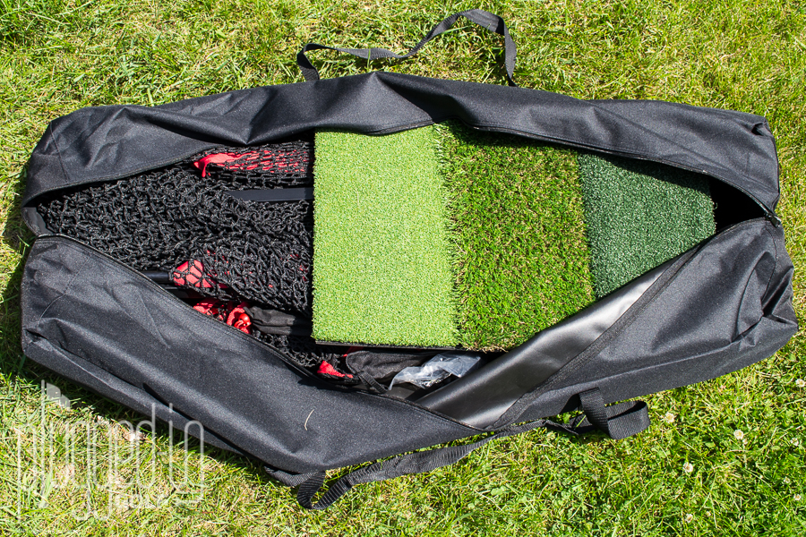 Personally, I would prefer a larger hitting mat for a couple of reasons. First, when you address the ball, you inevitably have the ball slightly above your feet. While this isn’t a deal breaker by any means, it would be better to be on the same level as the ball. The other, bigger reason is that I constantly think about the possibility of missing the mat and driving my club into the ground. Considering I use the mat on concrete, it’s that much more terrifying. Of course, the purpose of this product is to be a portable and self-contained driving range, so if the mat was any bigger, it would not fit in the provided bag. Given that reason, I’m perfectly ok with this.